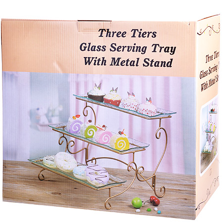 Конфетница фруктовница 3-х ярусная на подставке LORAINE стекло