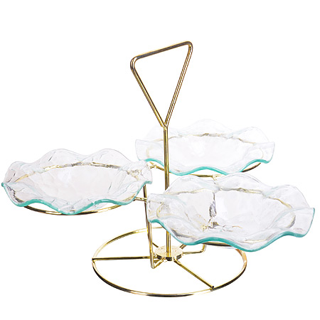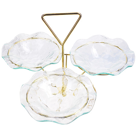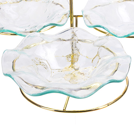 Элегантное блюдо LORAINE, выполненное из стекла, сочетает в себе изысканный дизайн с максимальной функциональностью. Блюдо предназначено для красивой подачи на стол конфет, фруктов и десертов. Подставка выполнена из стали с золотым покрытием. Блюдо украсит сервировку вашего стола и подчеркнет прекрасный вкус хозяина, а также станет отличным подарком.