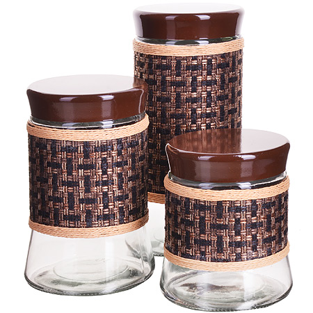 Банка для сыпучих продуктов 700мл, 1л, 1,4л набор 3шт MAYER & BOCH Плетенка стекло