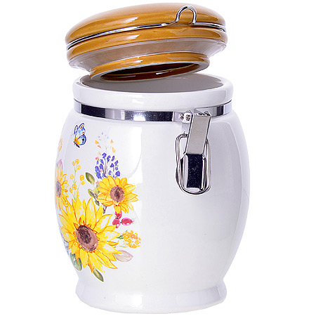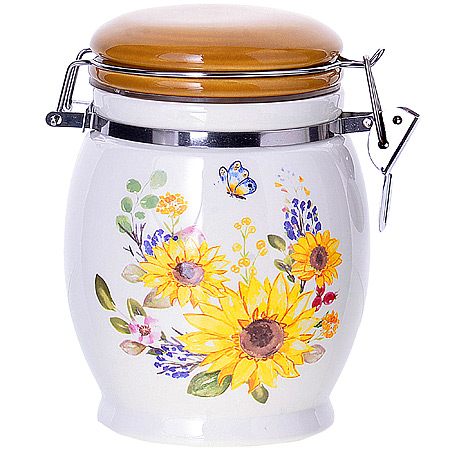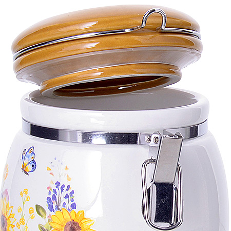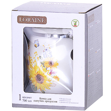 Банка для сыпучих продуктов LORAINE выполнена из качественной доломитовой керамики с красочным рисунком. Гладкая и ровная поверхность обеспечивает легкую очистку. Банка прекрасно подойдет для хранения различных сыпучих продуктов: специй, чая, кофе, сахара, круп и многого другого. Крышка плотно закрывается с помощью металлического зажима-клипсы, дольше сохраняя свежесть продуктов. Подходит для мытья в посудомоечной машине. Объем: 700 мл.