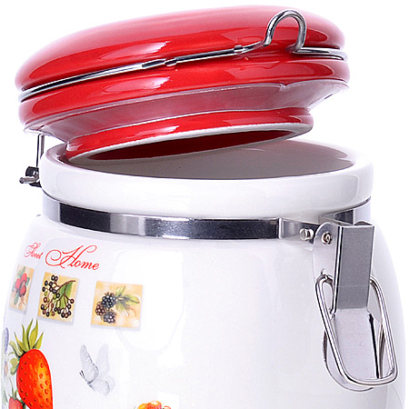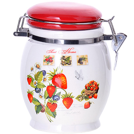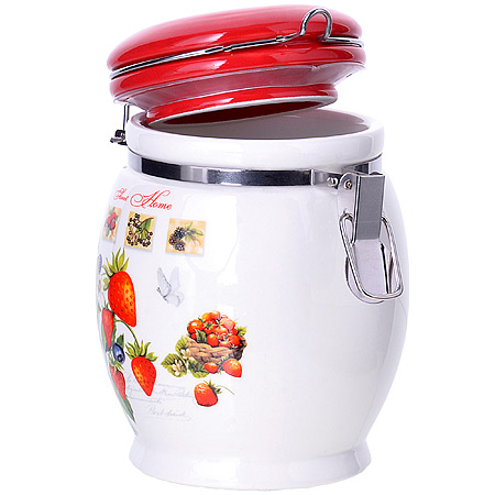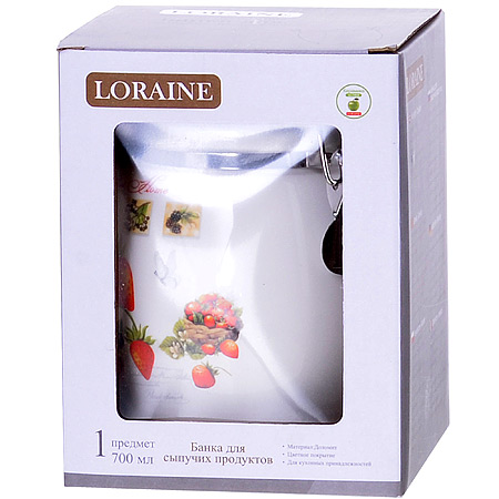 Банка для сыпучих продуктов 700мл LORAINE Земляника доломит LORAINE Банки для сыпучих LR Банка для сыпучих продуктов LORAINE выполнена из качественной доломитовой керамики с красочным рисунком. Гладкая и ровная поверхность обеспечивает легкую очистку. Банка прекрасно подойдет для хранения различных сыпучих продуктов: специй, чая, кофе, сахара, круп и многого другого. Крышка плотно закрывается с помощью металлического зажима-клипсы,