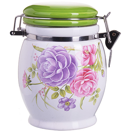 Банка для сыпучих продуктов 750мл LORAINE Камелия доломит LORAINE Банки для сыпучих LR Банка для сыпучих продуктов LORAINE изготовлена из доломитовой керамики высокого качества. Банка прекрасно подойдет для хранения различных сыпучих продуктов: специй, чая, кофе, сахара, круп и многого другого. Крышка плотно закрывается с помощью металлического зажима-клипсы, дольше сохраняя свежесть продуктов. Гладкая и ровная поверхность