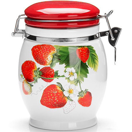 Банка для сыпучих продуктов 750мл LORAINE Клубника доломит LORAINE Банки для сыпучих LR Банка для сыпучих продуктов LORAINE изготовлена из доломитовой керамики высокого качества. Банка прекрасно подойдет для хранения различных сыпучих продуктов: специй, чая, кофе, сахара, круп и многого другого. Крышка плотно закрывается с помощью металлического зажима-клипсы, дольше сохраняя свежесть продуктов. Гладкая и ровная поверхность