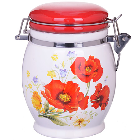 Банка для сыпучих продуктов 750мл LORAINE Маки доломит LORAINE Банки для сыпучих LR Банка для сыпучих продуктов LORAINE изготовлена из доломитовой керамики высокого качества. Банка прекрасно подойдет для хранения различных сыпучих продуктов: специй, чая, кофе, сахара, круп и многого другого. Крышка плотно закрывается с помощью металлического зажима-клипсы, дольше сохраняя свежесть продуктов. Гладкая и ровная поверхность
