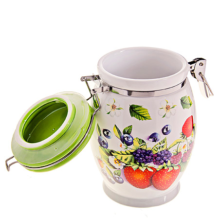 Банка для сыпучих продуктов LORAINE изготовлена из доломитовой керамики высокого качества. Банка прекрасно подойдет для хранения различных сыпучих продуктов: специй, чая, кофе, сахара, круп и многого другого. Крышка плотно закрывается с помощью металлического зажима-клипсы, дольше сохраняя свежесть продуктов. Гладкая и ровная поверхность обеспечивает легкую очистку. Такая банка не только сэкономит место на вашей кухне, но и украсит интерьер. Оригинальный дизайн и красивое оформление позволит сделать ее отличным подарком на любой праздник. Подходит для мытья в посудомоечной машине. Объем: 900 мл. Диаметр (по верхнему краю): 9 см. Высота: 17 см.