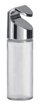Изготовлена из закаленного стекла, крышечка из хромированного пластика.