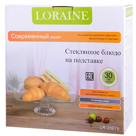 Блюдо стеклянное для подачи конфет, фруктовница 30см LORAINE на ножке