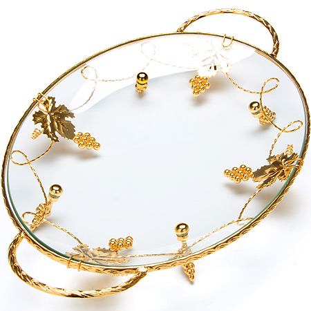 Элегантное блюдо MAYER & BOCH, выполненное из стекла, сочетает в себе изысканный дизайн с максимальной функциональностью. Блюдо ВАНЕССА предназначено для красивой подачи на стол конфет, фруктов и десертов. Блюдо оформлено оригинальным золотым орнаментом. Ножки в виде виноградной лозы выполнены из стали с золотым покрытием. Блюдо украсит сервировку