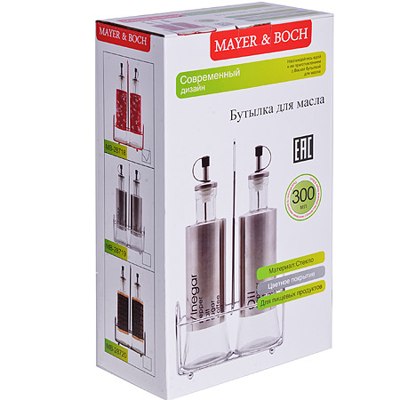 Набор бутылок для масла и уксуса MAYER & BOCH выполнена из высококачественного стекла. Изделие предназначено для хранения и использования различных растительных масел и уксусов. Оригинальность оформления бутылки украсит любую кухню и послужит отличным подарком! Изделие обладает гладкой непористой поверхностью, не впитывает запахи, легко моется. Объем: 2 х 300 мл.