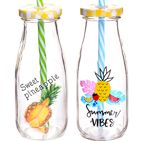 Бутылка для смузи 300мл LORAINE с трубочкой, стекло