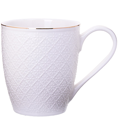 Чашка кружка фарфоровая 300мл LORAINE Openwork золотистая кайма LORAINE Чашки, кружки LR Кружка LORAINE, выполненная из фарфора в оригинальном дизайне, станет красивым и полезным подарком для ваших родных и близких. Фарфор — один из самых древних материалов, который использовали наши предки для изготовления посуды. С древних времен и до наших дней фарфоровая посуда занимала важное место на кухне многих хозяек. Сегодня фарфоровая