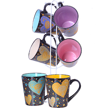 Чашка кружка керамическая 360мл набор 6шт LORAINE Сердце на металлической подставке LORAINE Чашки, кружки LR Набор LORAINE из 6-ти чашек изготовлен из высококачественной керамикии и 1 металлической подставки. Элегантный дизайн придется по вкусу и ценителям классики, и тем, кто предпочитает утонченность и изысканность. Он настроит на позитивный лад и подарит хорошее настроение с самого утра. Чайный набор идеально подойдет для сервировки стола и станет