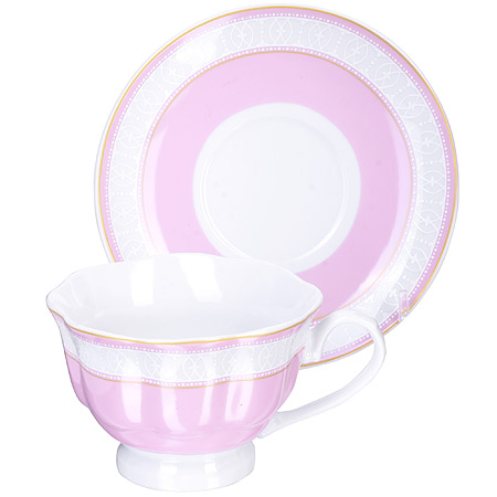 Чайная кофейная пара: чашка 220мл, блюдце 13,5см LORAINE фарфор, розовая LORAINE Чашки, кружки LR Чайная пара LORAINE на 1 персону, изготовленная из высококачественного костяного фарфора изысканного белого цвета, состоит из чашки и блюдца. Изделия набора украшены тонкой каймой и имеют красивый и нежный дизайн. Набор придется по вкусу и ценителям классики, и тем, кто предпочитает утонченность и изысканность. Он настроит на позитивный лад и