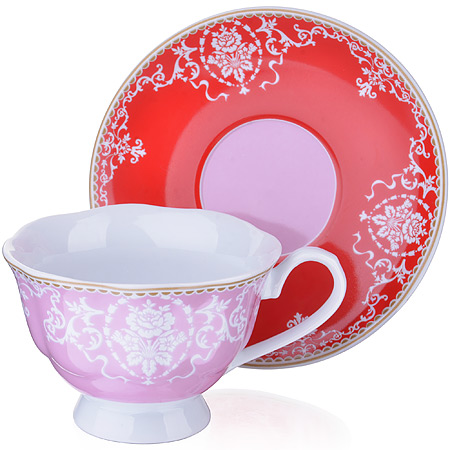 Чайная кофейная пара: чашка 220мл, блюдце 13,5см LORAINE фарфор, розовый Чайная кофейная пара: чашка 220мл, блюдце 13,5см LORAINE фарфор, розовый