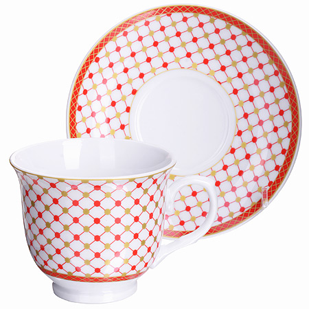 Чайная кофейная пара: чашка 220мл, блюдце 13,5см LORAINE Клетка фарфор Чайная кофейная пара: чашка 220мл, блюдце 13,5см LORAINE Клетка фарфор Чайная кофейная пара: чашка 220мл, блюдце 13,5см LORAINE Клетка фарфор