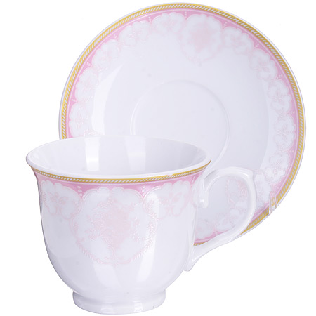 Чайная кофейная пара: чашка 220мл, блюдце 13,5см LORAINE Узор фарфор, белая Чайная кофейная пара: чашка 220мл, блюдце 13,5см LORAINE Узор фарфор, белая Чайная кофейная пара: чашка 220мл, блюдце 13,5см LORAINE Узор фарфор, белая