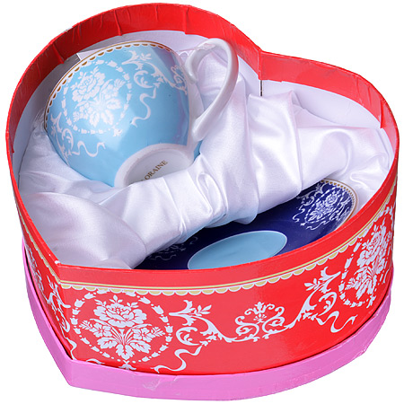 Чайная кофейная пара: чашка 220мл, блюдце 13,5см LORAINE Узор фарфор, голубой