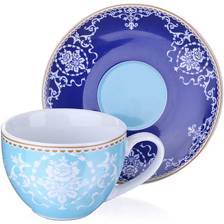 Чайная кофейная пара: чашка 220мл, блюдце 13,5см LORAINE Узор фарфор, голубой Чайная кофейная пара: чашка 220мл, блюдце 13,5см LORAINE Узор фарфор, голубой