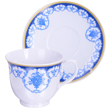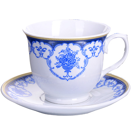 Чайная кофейная пара: чашка 220мл, блюдце 13,5см LORAINE Узор синий фарфор