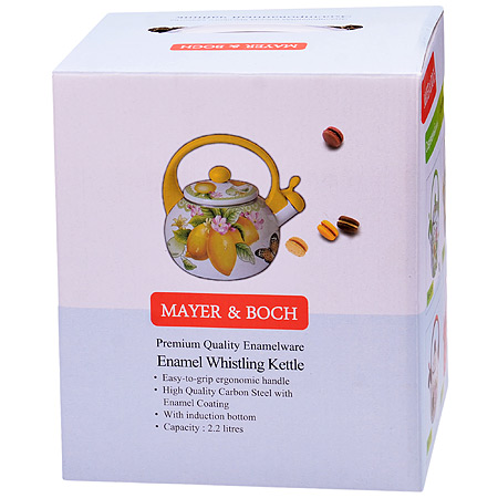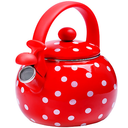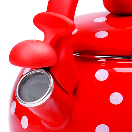Чайник выполнен из высококачественной углеродистой стали. Углеродистая сталь устойчива к высоким температурам и не теряет своих свойств даже при очень сильном нагреве. Углеродистая сталь быстро и равномерно нагревается и хорошо сохраняет тепло, легкая, прочная и долговечная. Внешняя и внутренняя поверхности чайника покрыты эмалью. Эргономичная ручка выполнена из бакелита. Носик чайника оснащен насадкой-свистком, который позволяет контролировать процесс кипячения или подогрева воды. Свисток приподнимается с помощью специального механизма на носике чайника. Поверхность изделия гладкая, что облегчает уход за ним. Эстетичный и функциональный, с эксклюзивным дизайном, чайник будет оригинально смотреться на любой кухне. Подходит для использования на всех типах плит, включая индукционные. Подходит для мытья в посудомоечной машине. Объем: 2,2 л.