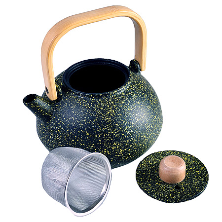 Заварочный чайник изготовлен из чугуна высокого качества. Внутренняя и внешняя поверхности чайника покрыты термостойким лаком, который защищает металл от ржавчины и препятствует возникновению металлического привкуса у напитка. Размещенный внутри чайника сетчатый фильтр гарантирует прозрачность и чистоту напитка от чайных листьев.