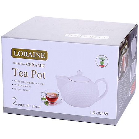 Заварочный чайник LORAINE выполнен из высококачественного фарфора. Фарфоровый чайник прост и удобен в применении, чайник легко мыть. Не ставьте чайник на открытый огонь и нагревающиеся поверхности. Подходит для мытья в посудомоечной машине.