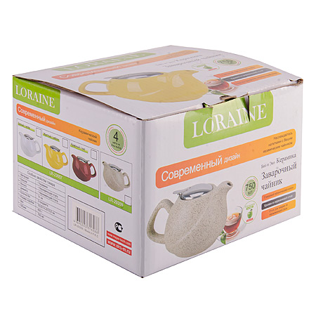 Чайник заварочный керамический 750мл/14см LORAINE бежевый LORAINE Чайники заварочные LR Заварочный чайник LORAINE выполнен из высококачественной цветной керамики. Фильтр из нержавеющей стали для заваривания раскроет букет чая и не позволит чаинкам попасть в чашку. Удобная металлическая крышка поддержит нужную температуру для заваривания чая. Керамический чайник прост и удобен в применении, чайник легко мыть. Не ставьте чайник на