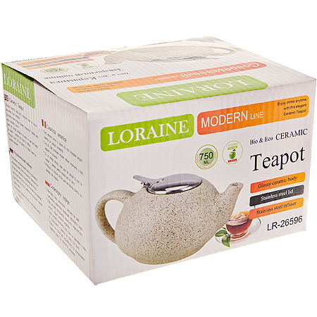 Чайник заварочный керамический 750мл LORAINE с металлической крышкой, бежевый LORAINE Чайники заварочные LR Заварочный чайник выполнен из высококачественной цветной керамики. Фильтр из нержавеющей стали для заваривания раскроет букет чая и не позволит чаинкам попасть в чашку. Удобная металлическая крышка поддержит нужную температуру для заваривания чая. Керамический чайник прост и удобен в применении, чайник легко мыть. Не ставьте чайник на открытый
