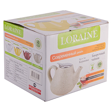 Чайник заварочный керамический 950мл/14см LORAINE бежевый LORAINE Чайники заварочные LR Заварочный чайник LORAINE выполнен из высококачественной цветной керамики. Фильтр из нержавеющей стали для заваривания раскроет букет чая и не позволит чаинкам попасть в чашку. Удобная металлическая крышка поддержит нужную температуру для заваривания чая. Керамический чайник прост и удобен в применении, чайник легко мыть. Не ставьте чайник на