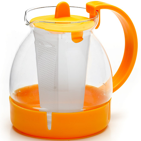 Чайник заварочный стеклянный 1,25л MAYER & BOCH с фильтром, оранжевый MAYER & BOCH Чайники заварочные M&B Заварочный чайник MAYER & BOCH изготовлен из термостойкого боросиликатного стекла, фильтр выполнен из полипропилена. Изделия из стекла не впитывают запахи, благодаря чему вы всегда получите натуральный, насыщенный вкус и аромат напитков. Заварочный чайник из стекла удобно использовать для повседневного заваривания чая практически любого сорта. Но