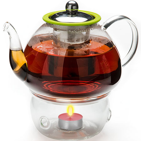 Чайник заварочный стеклянный 1,2л MAYER & BOCH Green с ситечком, подставка для подогрева MAYER & BOCH Чайники заварочные M&B Заварочный чайник MAYER & BOCH изготовлен из термостойкого боросиликатного стекла, крышка и фильтр выполнены из нержавеющей стали. Чайник оснащен стеклянной подставкой для подогрева, рассчитанной на одну греющую свечу. Изделия из стекла не впитывают запахи, благодаря чему Вы всегда получите натуральный, насыщенный вкус и аромат напитков.