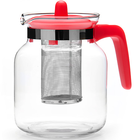 Чайник заварочный стеклянный 1,45л MAYER & BOCH с фильтром, красный MAYER & BOCH Чайники заварочные M&B Заварочный чайник MAYER & BOCH изготовлен из термостойкого боросиликатного стекла, фильтр выполнен из нержавеющей стали. Изделия из стекла не впитывают запахи, благодаря чему вы всегда получите натуральный, насыщенный вкус и аромат напитков. Заварочный чайник из стекла удобно использовать для повседневного заваривания чая практически любого сорта.
