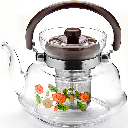 Заварочный чайник с металлическим фильтром/ситечком изготовлен из термостойкого боросиликатного стекла с нежным цветочным рисунком. Крышка и ручка из бакелита, фильтр из нержавеющей стали. Изделия из стекла не впитывают запахи, благодаря чему вы всегда получите натуральный, насыщенный вкус и аромат напитков. Заварочный чайник из стекла удобно использовать для повседневного заваривания чая практически любого сорта. Но цветочные, фруктовые, красные и желтые сорта чая лучше других раскрывают свой вкус и аромат при заваривании именно в стеклянных чайниках, а также сохраняют все полезные ферменты и витамины, содержащиеся в чайных листах. Сетчатый металлический фильтр гарантирует прозрачность и чистоту напитка от чайных листьев, при этом сохранив букет и насыщенность чая. Прозрачные стенки чайника дают возможность насладиться насыщенным цветом заваренного чая. Эстетичный и функциональный, заварочный чайник будет прекрасно смотреться в любом интерьере. Подходит для мытья в посудомоечной машине. Объем: 1400 мл.