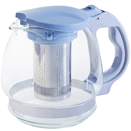Чайник заварочный стеклянный 1,5л MAYER & BOCH с фильтром, голубая крышка MAYER & BOCH Чайники заварочные M&B Заварочный чайник MAYER & BOCH изготовлен из термостойкого стекла, фильтр выполнен из нержавеющей стали. Изделия из стекла не впитывают запахи, благодаря чему вы всегда получите натуральный, насыщенный вкус и аромат напитков. Заварочный чайник из стекла удобно использовать для повседневного заваривания чая практически любого сорта. Но цветочные,