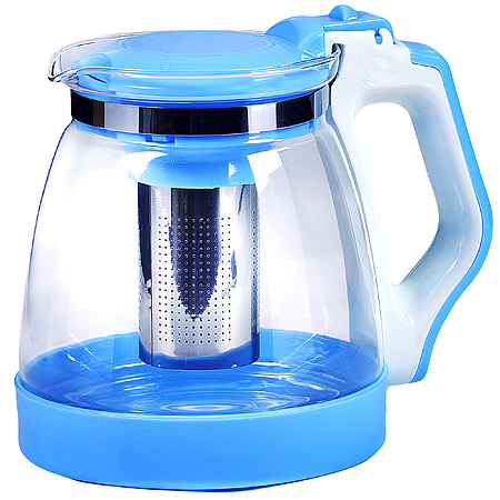 Чайник заварочный стеклянный 1,8л MAYER & BOCH с фильтром, синий MAYER & BOCH Чайники заварочные M&B Заварочный чайник MAYER & BOCH изготовлен из термостойкого стекла, фильтр выполнен из нержавеющей стали. Изделия из стекла не впитывают запахи, благодаря чему вы всегда получите натуральный, насыщенный вкус и аромат напитков. Заварочный чайник из стекла удобно использовать для повседневного заваривания чая практически любого сорта. Но цветочные,