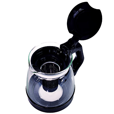 • Комментарий/вопрос: Прекрасный чайник. Нравится, что весь из стекла. Хотя в заварочном отделении маленькие отверстия, чай заваривается хорошо. Чаинки не попадают в основную емкость чайника.