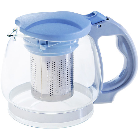 Чайник заварочный стеклянный 850мл MAYER & BOCH с фильтром, голубой MAYER & BOCH Чайники заварочные M&B Заварочный чайник MAYER & BOCH изготовлен из термостойкого стекла, фильтр выполнен из нержавеющей стали. Изделия из стекла не впитывают запахи, благодаря чему вы всегда получите натуральный, насыщенный вкус и аромат напитков. Заварочный чайник из стекла удобно использовать для повседневного заваривания чая практически любого сорта. Но цветочные,