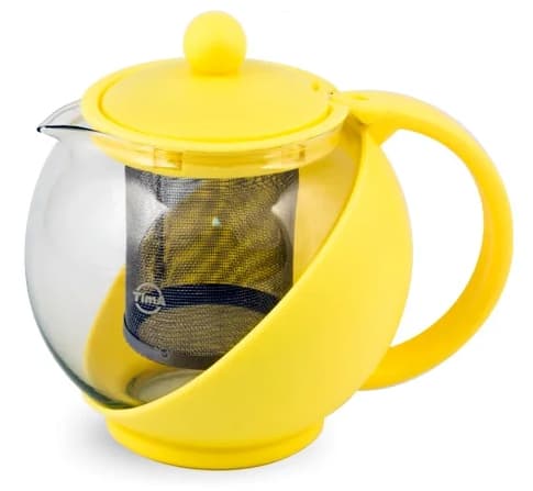Чайник заварочный стеклянный 0,75л TIMA Лимон с ситом, желтый пластик
