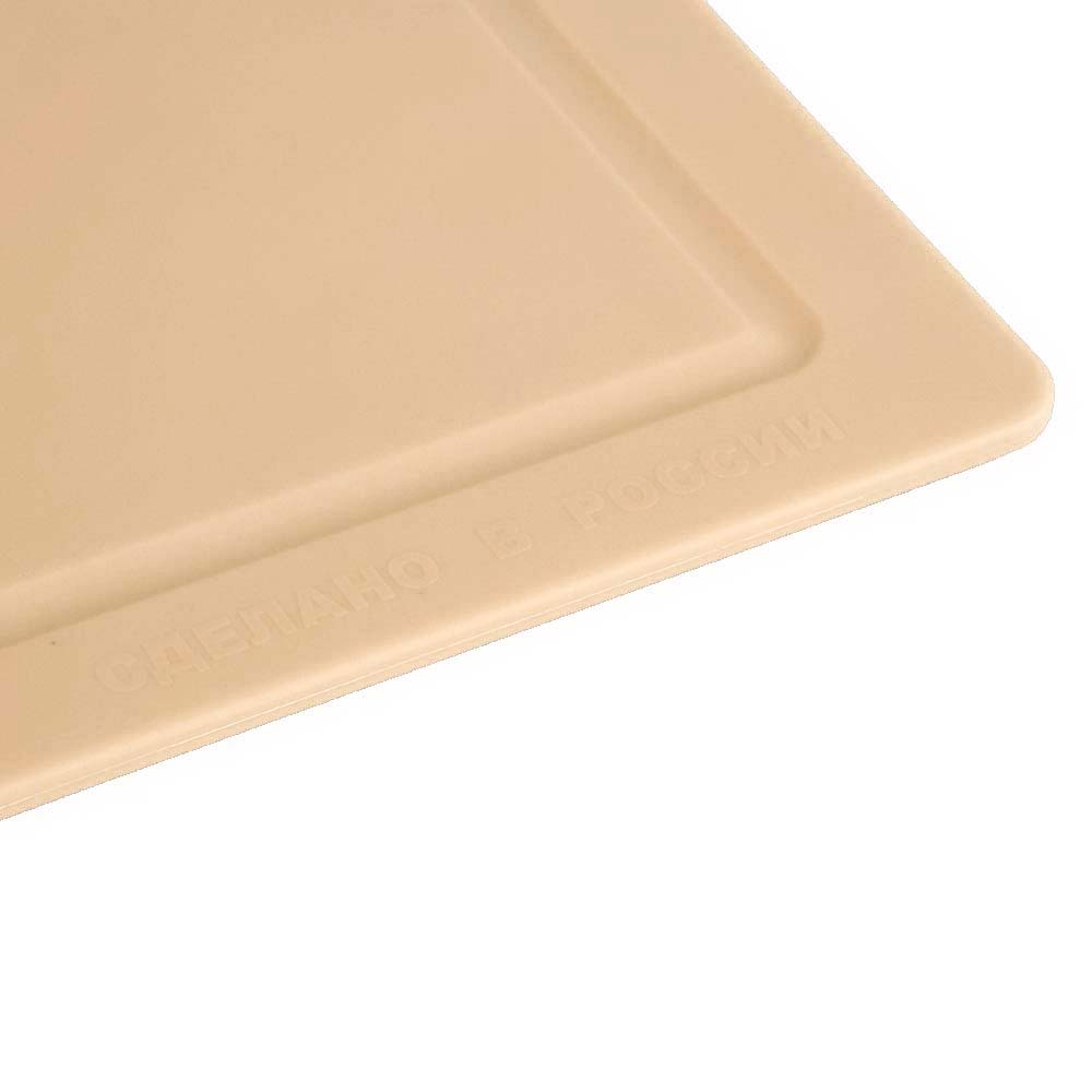 Доска плотно прилегает к любой поверхности стола или столешницы, не скользит. При работе с острым ножом это очень важно в плане безопасности. По краю доски проходит небольшой желоб, который предохраняет от растекания жидкости (например, сок фруктов и овощей).