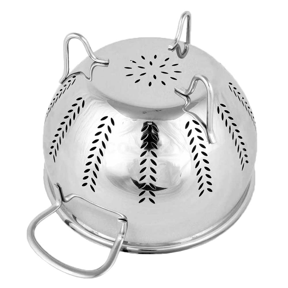 Он предназначен для отделения жидкости от продуктов, например, макаронных изделий, круп, картофеля. А также для промывания ягод, грибов, фруктов и овощей. Благодаря отверстиям не только на дне, но и по бокам, отделение жидкости от продуктов происходит практически мгновенно.