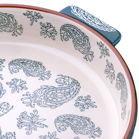Форма противень для запекания 1,8л/30х26х5,5см LORAINE Узор керамика, бирюзовая LORAINE Жаровни LR Форма для запекания LORAINE выполнена из качественной жаропрочной керамики. Изделие имеет прочные стенки и дно, однородные по толщине, благодаря чему нагрев происходит равномерно. Форма подходит для запекания и тушения разнообразных продуктов. Изделие не впитывает посторонние запахи, не имеет труднодоступных выступов или изгибов, которые