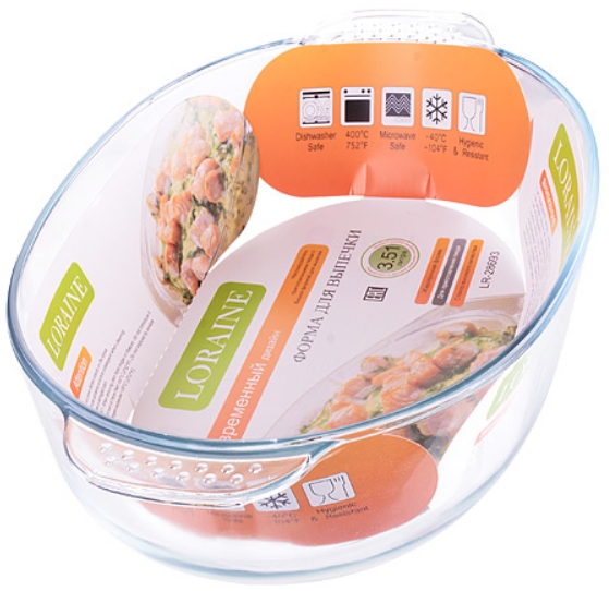 Форма для запекания 29х20см LORAINE стекло овальная высокая LORAINE LR Baking Форма для выпечки LORAINE изготовлена из термостойкого боросиликатного стекла. Форма жаровни овальная с двумя ручками по краям. Жаровня будет отличным выбором для всех любителей блюд, приготовленных в духовке и микроволновой печи. Стеклянное изделие не вступает в реакцию с готовящейся пищей, а потому не выделяет никаких вредных веществ, не