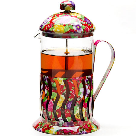Френч-пресс изготовлен из высокотехнологичных материалов на современном оборудовании. Колба из высококачественного термостойкого стекла заключена в корпус из нержавеющей стали, украшенный ярким рисунком. Фильтр-поршень из нержавеющей стали выполнен по технологии "press-up" для обеспечения равномерной циркуляции воды в чайнике. Удобная, не