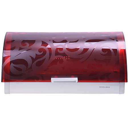 Хлебница MAYER & BOCH позволит надолго сохранить свежесть, мягкость, аромат хлеба и других хлебобулочных изделий. Хлебница выполнена в классическом дизайне из нержавеющей стали и полупрозрачного пластика с красивым узором. Сталь не окисляется, не ржавеет и не вступает в реакцию с пищевыми продуктами — это прочный и неприхотливый в уходе материал. Хлебница снабжена удобной крышкой и отверстиями для вентиляции продуктов. Фактурное дно не допустит скольжение хлебницы по поверхности. Хлебница имеет компактные размеры, поэтому не займет много места. Эксклюзивный дизайн, эстетика и функциональность хлебницы делают ее превосходным аксессуаром на Вашей кухне.