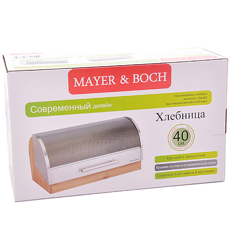 Хлебница MAYER & BOCH, выполненная в классическом дизайне из бамбука, позволит сохранить ваш хлеб свежим и вкусным. Полупрозрачная пластиковая крышка плавно открывается и является герметичной. Крышка оснащена ручкой. Эксклюзивный дизайн, эстетика и функциональность хлебницы делают ее превосходным аксессуаром на вашей