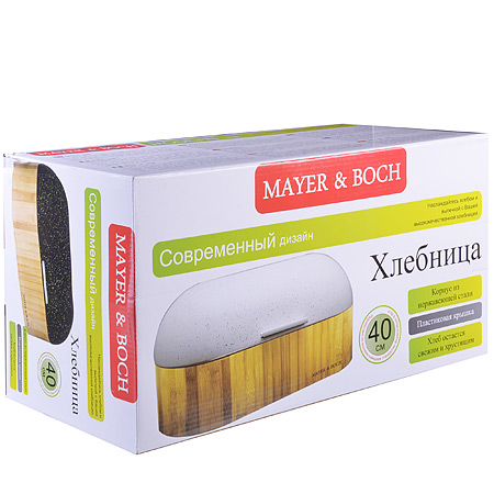 Хлебница MAYER & BOCH, выполененая в эксклюзивном дизайне из экологических чистых матералов, поможет надолго сохранить ваш хлеб свежим. Крышка хлебницы имеет надежный механизм и не занимает дополнительного места для открытия, легко и бесшумно открывается и закрывается. Яркий дизайн, эстетичность и функциональность сделают хлебницу превосходным аксессуаром на вашей кухне. Размер хлебницы: 40 х 25 х 20,5 см.