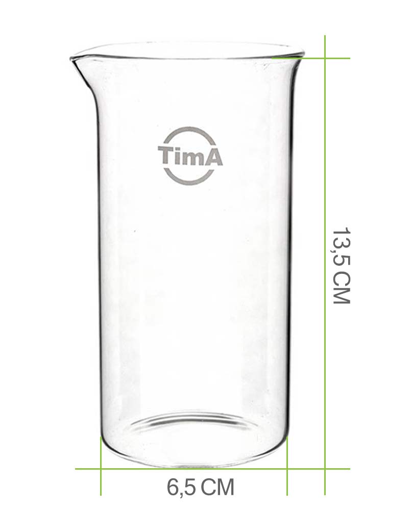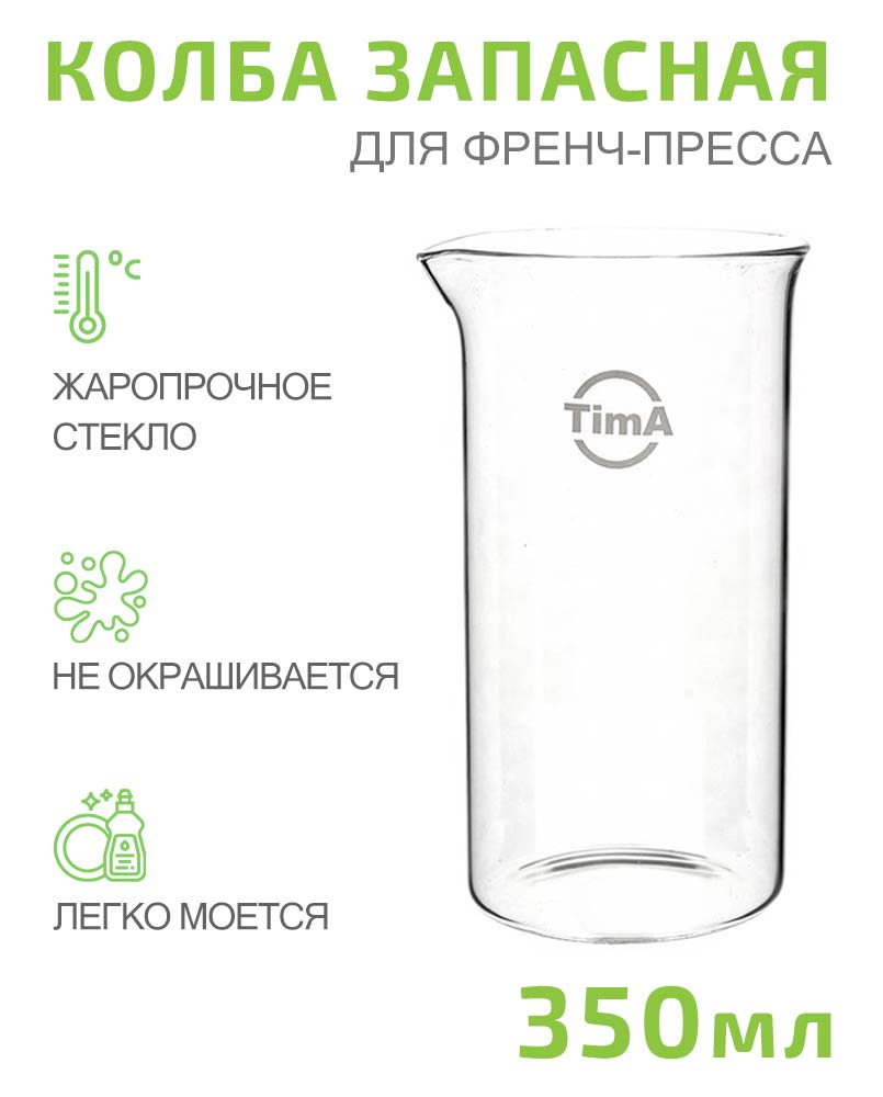 Запасная колба для френч-пресса TIMA устойчива к запахам, не окрашивается, легко моется. Диаметр дна 6,5 см, высота 13,5