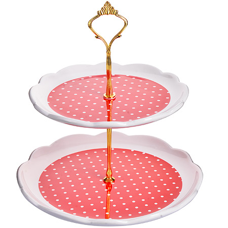 Красочная конфетница LORAINE, выполненная из высококачественной керамики, сочетает в себе классический дизайн с максимальной функциональностью. Конфетница состоит из 2-х ярусов разного размера и предназначена для красивой сервировки конфет, фруктов и десертов. Круглые ярусы конфетницы имеют волнистые края и оформлены в красно-белых тонах с белым узором. Стойка-держатель конфетницы выполнена из металла с золотым напылением. Высота конфетницы в собранном виде составляет около 28 см. Элегантная конфетница LORAINE украсит сервировку Вашего стола и подчеркнет прекрасный вкус хозяйки, а также станет отличным подарком. Изделие упаковано в индивидуальную коробку. Подходит для использования в холодильнике, посудомоечной машине. D нижнего яруса: 24,5 см. D верхнего яруса: 20,5 см.