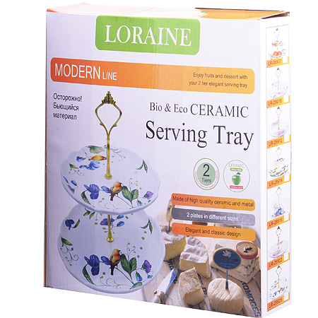 Конфетница фруктовница 2-х ярусная LORAINE Камелия керамика