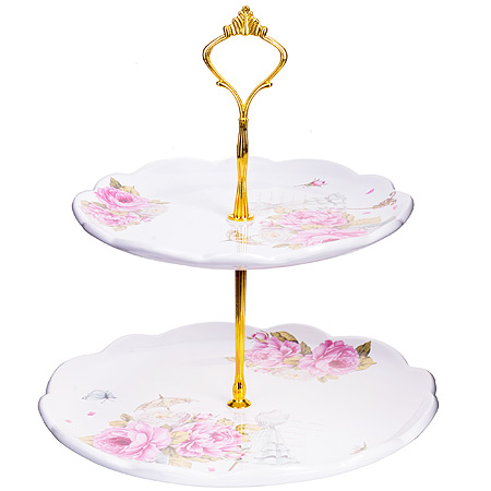 Конфетница фруктовница 2-х ярусная LORAINE Пионы доломит